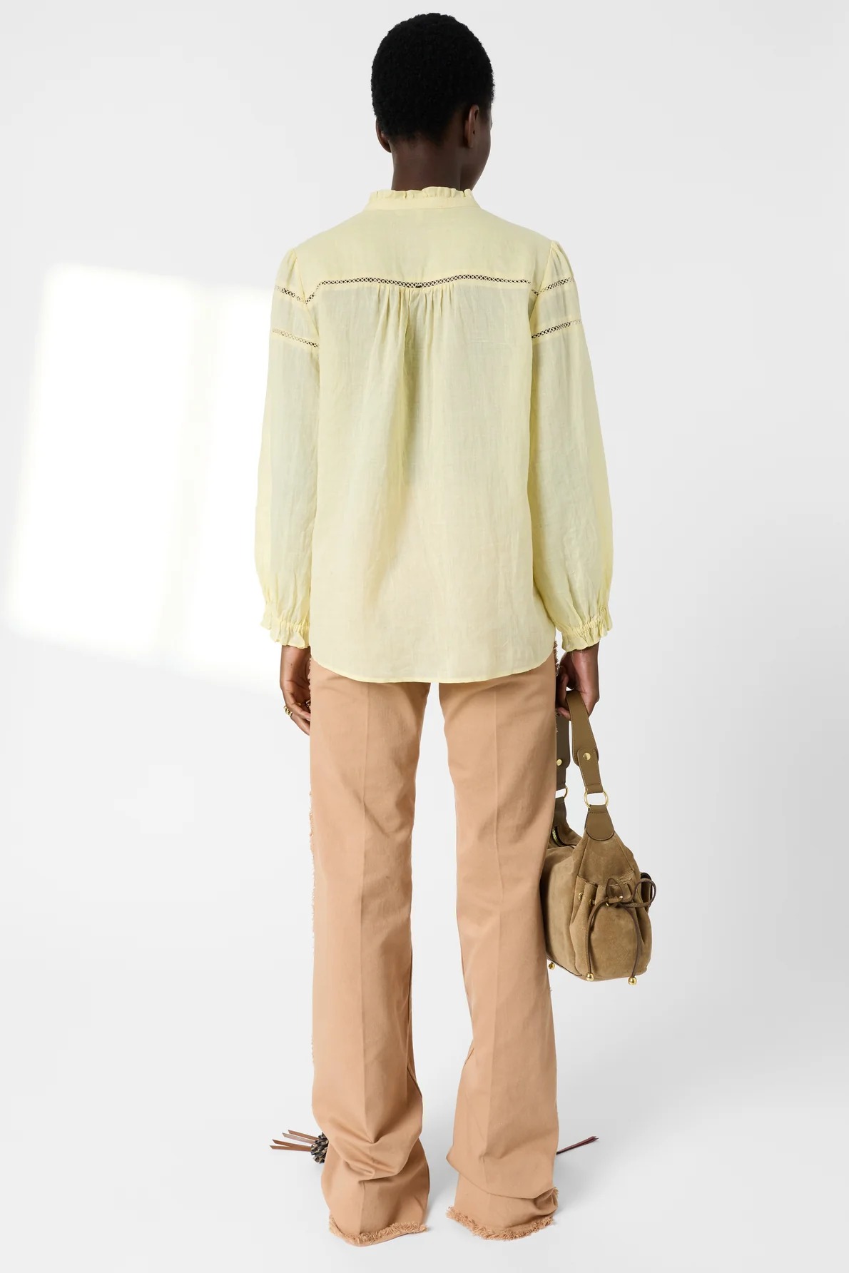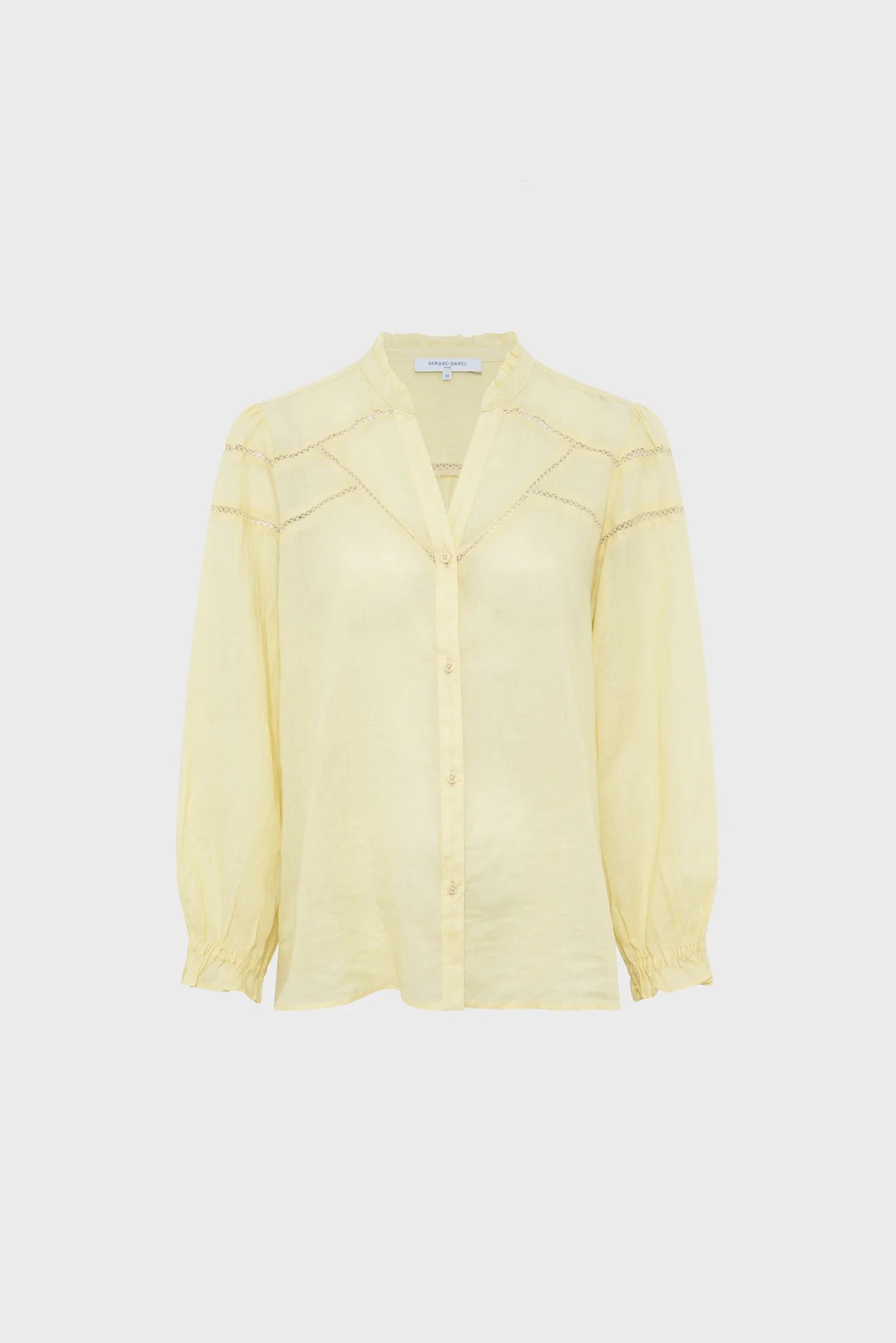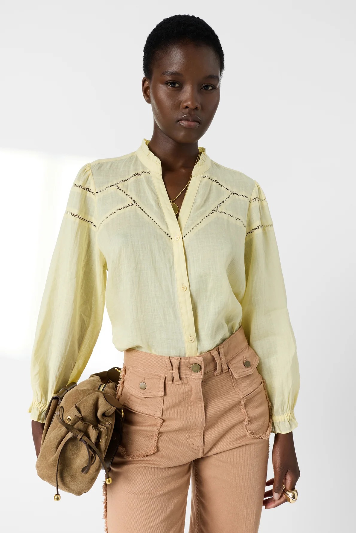 This shirt will captivate with its fine fabric with subtle transparency, its delicate openwork embroidery and its yellow color which will enhance tanned complexions.