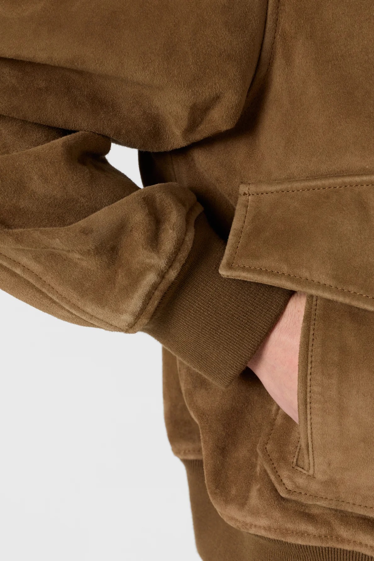 This suede jacket will captivate with its bomber-inspired cut and the soft, velvety feel of the material. It is offered in a taupe color, easy to pair with dark shades but also with pastels.