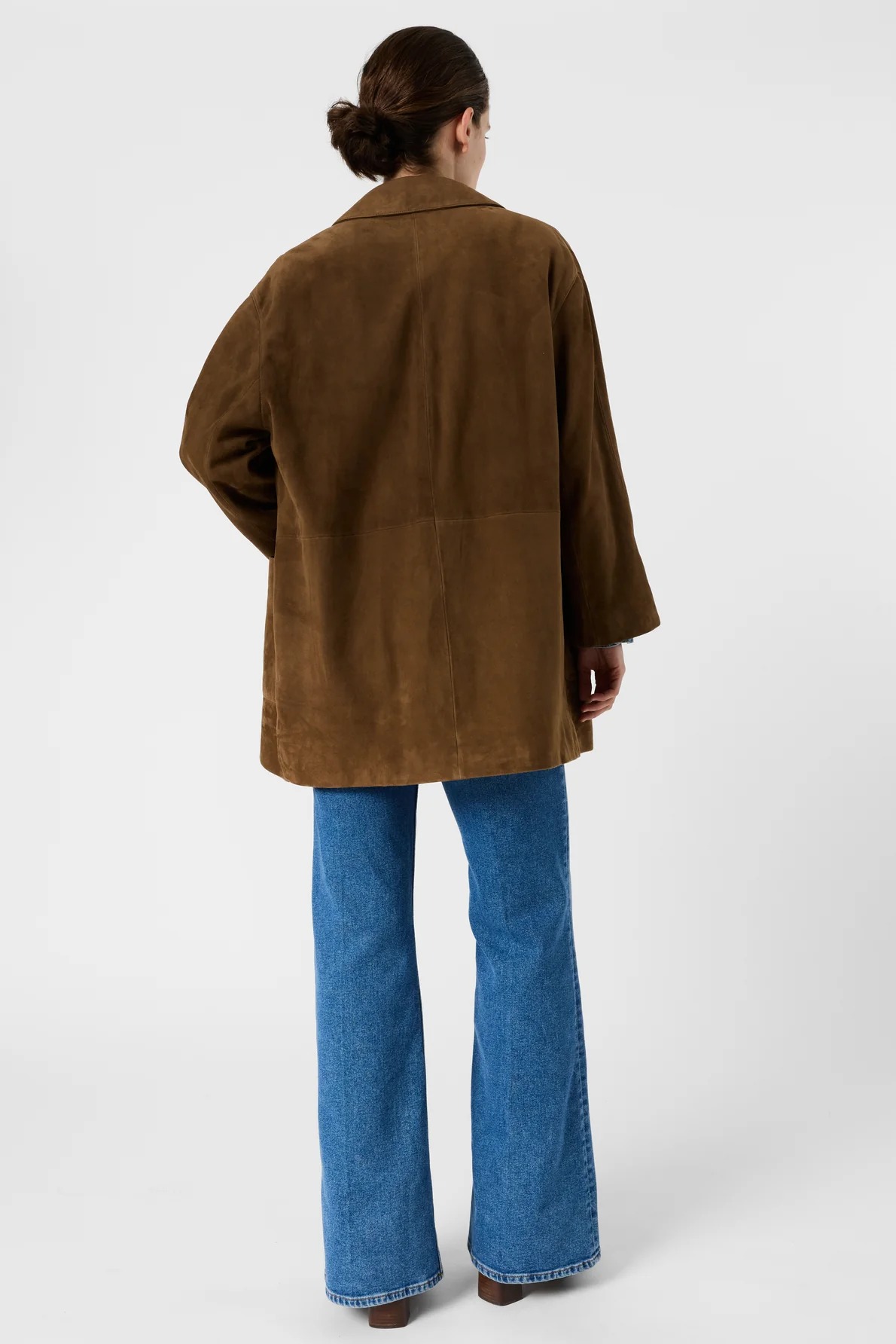 Palton din piele întoarsă cu fermoar camel – TILANE