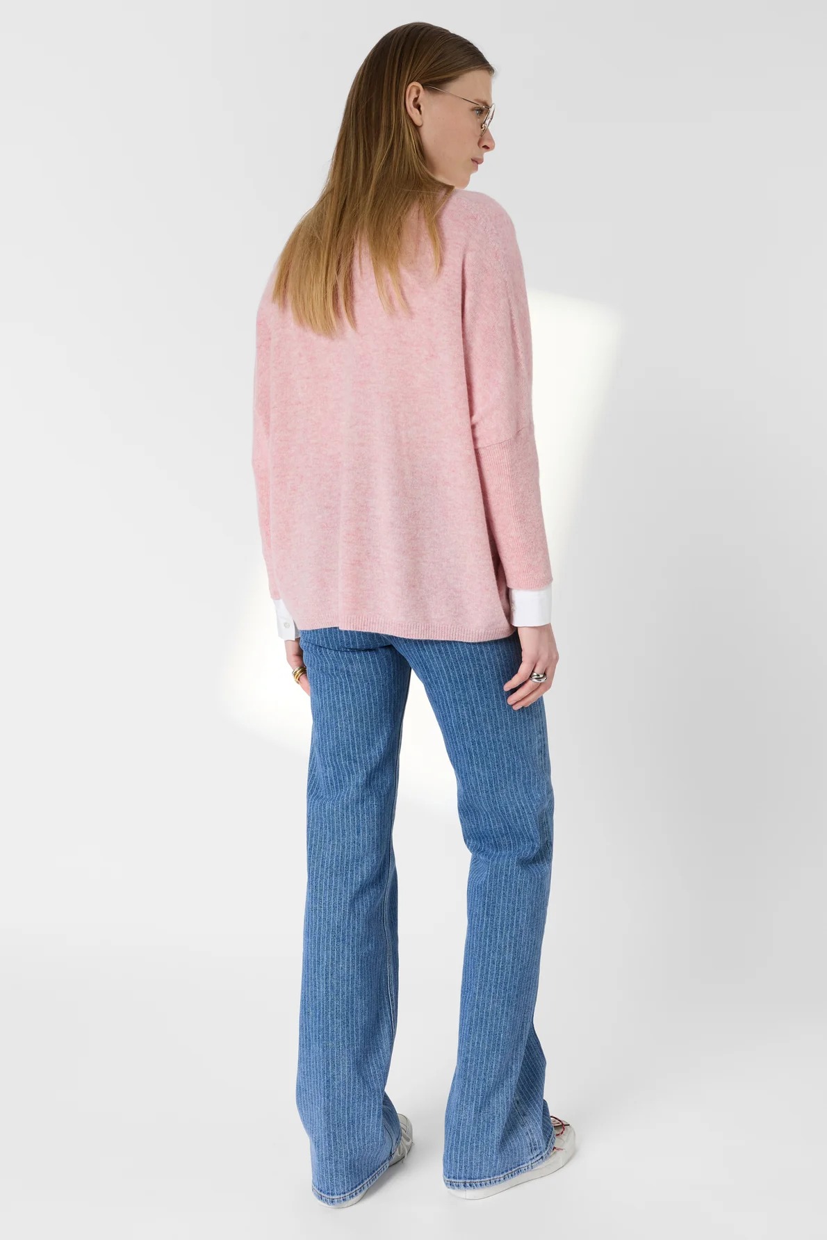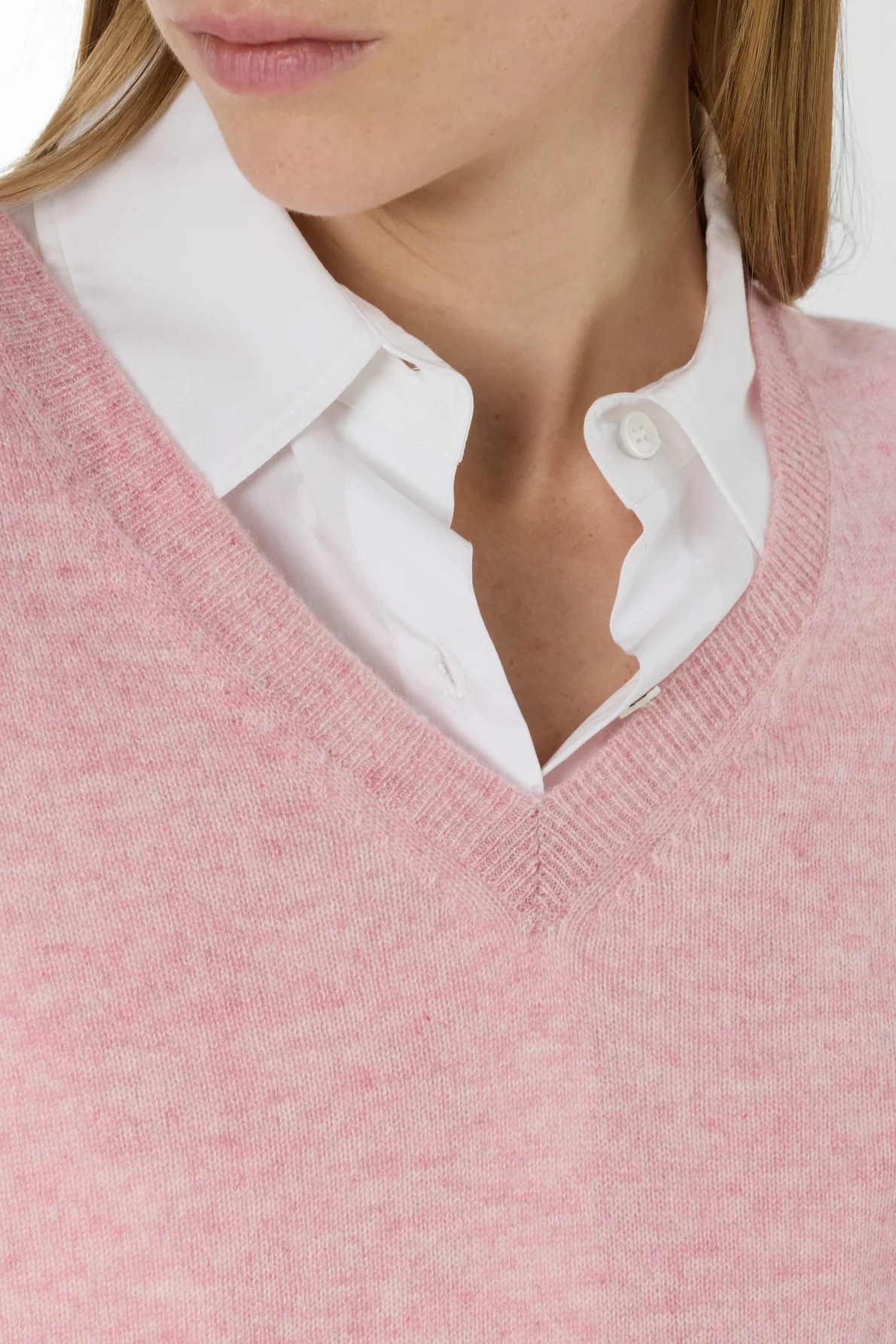 Pulover lejer din cașmir cu decolteu în V roz – LENAE